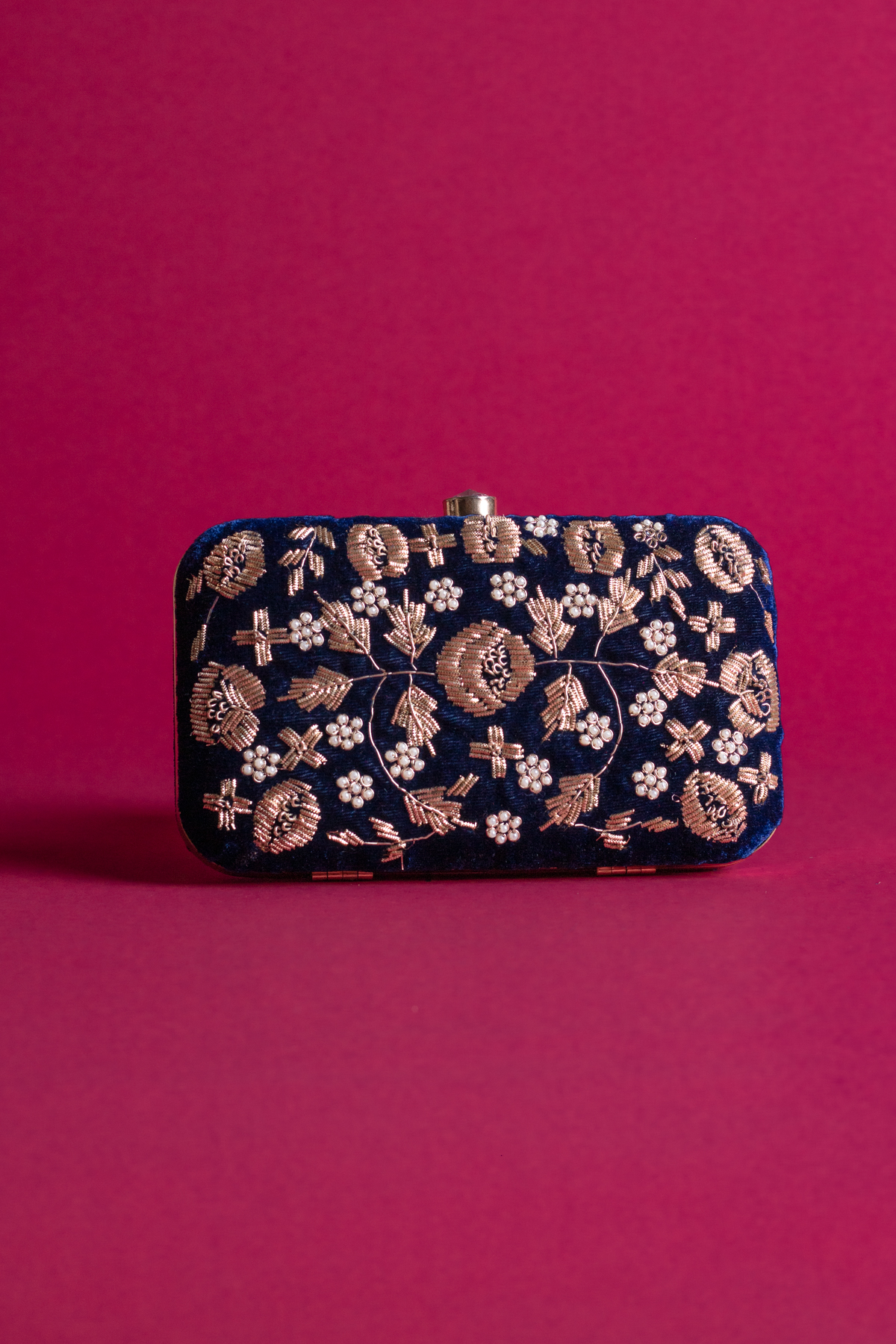 This luxurious bag is offered in the clutch pattern and features a chain for convenient use. It is available in the perfect dimensions and is a beautiful illustration of high-level craftsmanship of gold coloured thread work and pearl embellishments which makes it look much more appealing, this exquisite clutch will give you a standout look in casual and party wear attires.
