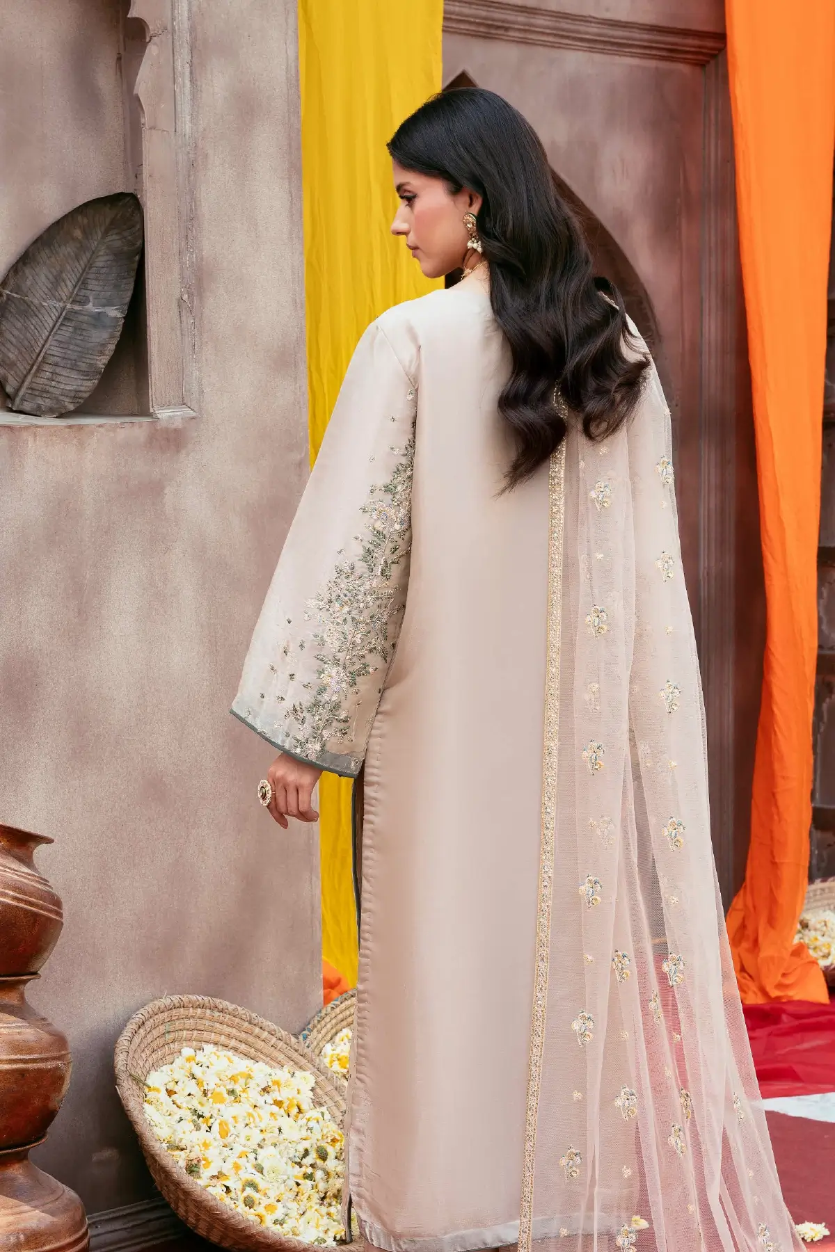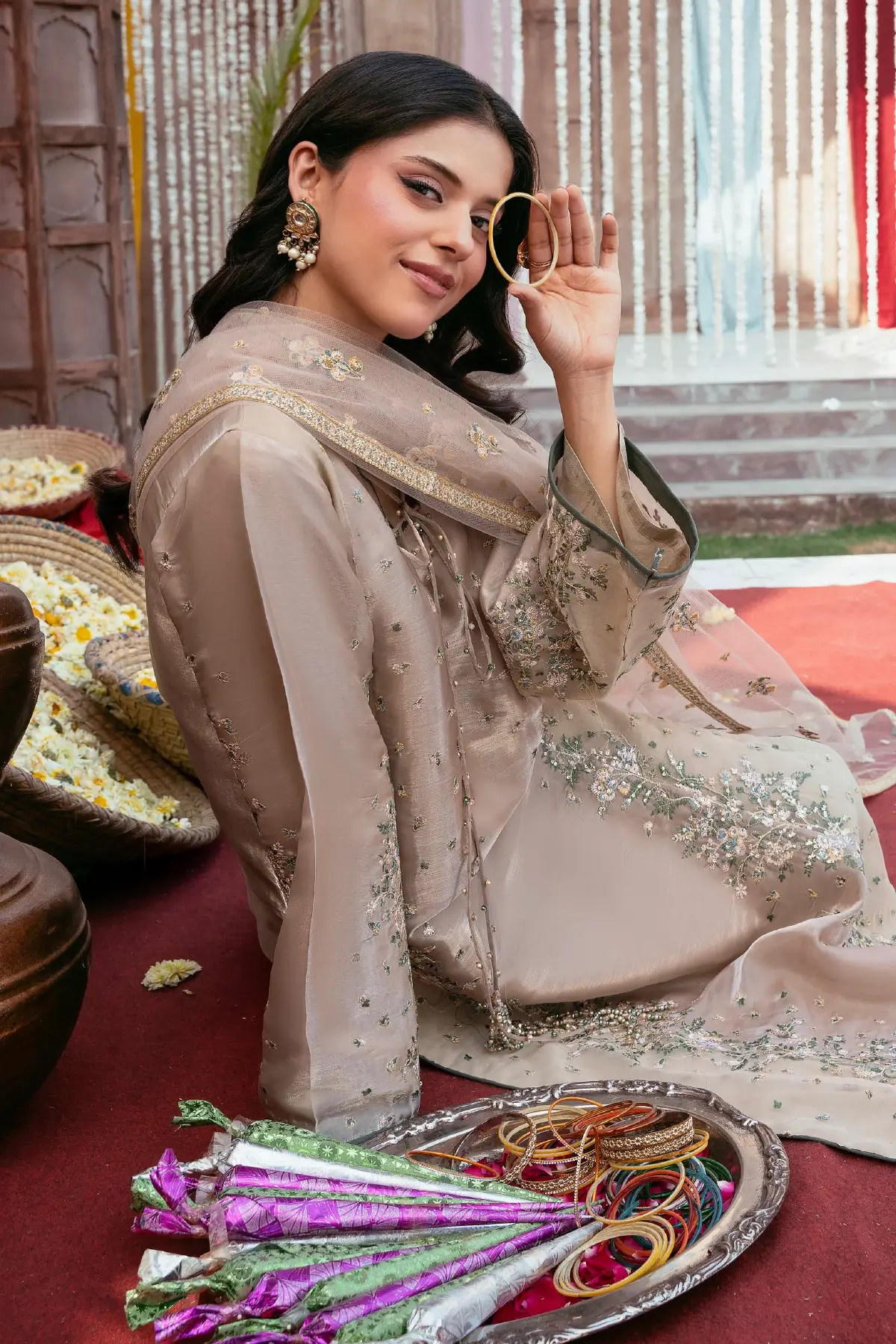 Embroidered Organza Dupatta The look is completed with an embroidered organza dupatta, adding lightness, texture, and a beautifully refined touch.