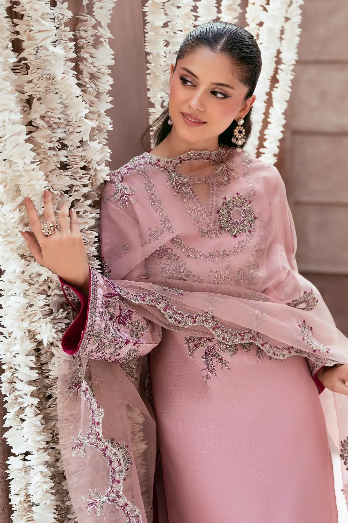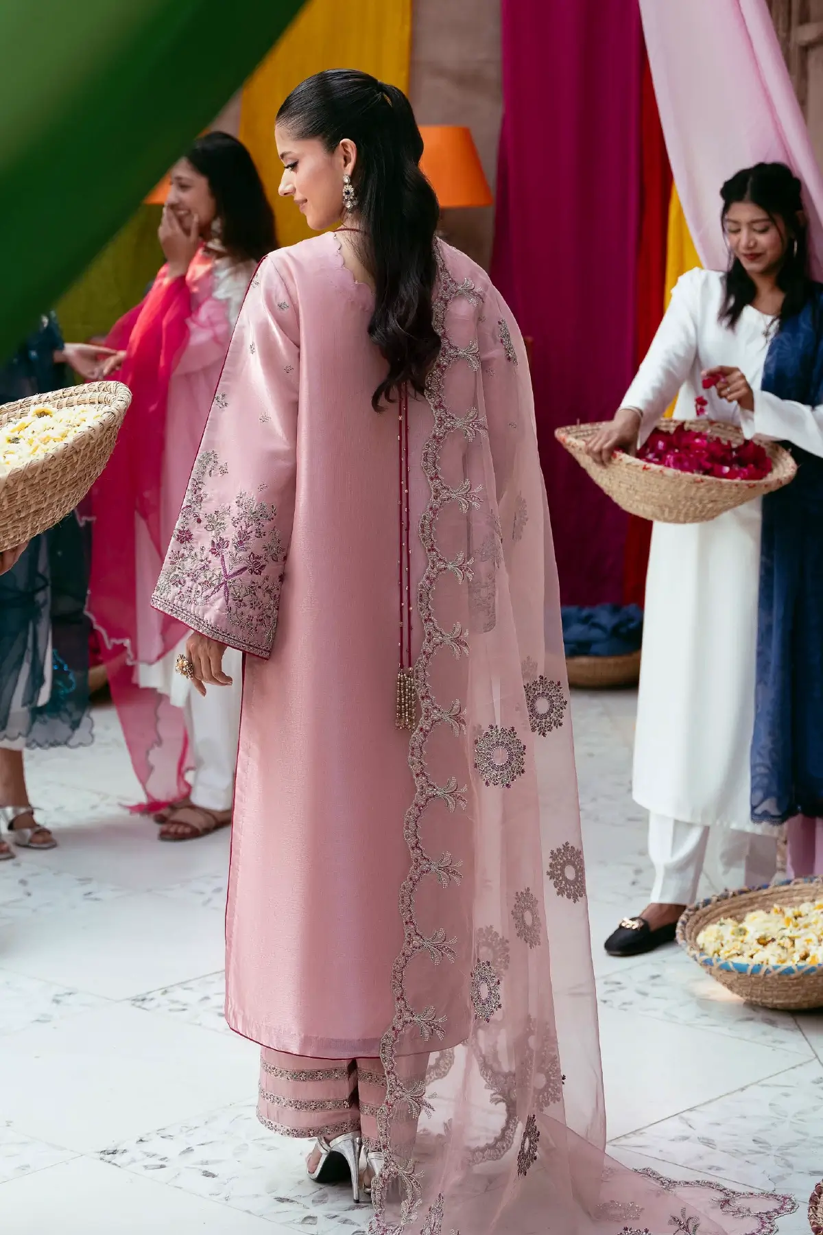 Embroidered Organza Dupatta The look is completed with an embroidered organza dupatta, adding softness, texture, and a beautifully refined touch.