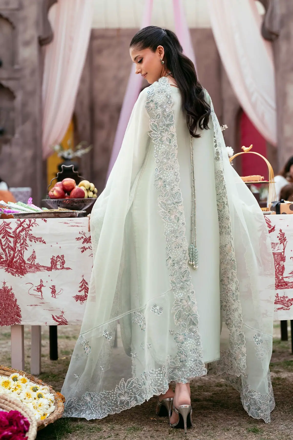 Embroidered Organza Dupatta The look is completed with an embroidered organza dupatta, adding lightness, texture, and a delicately refined touch.