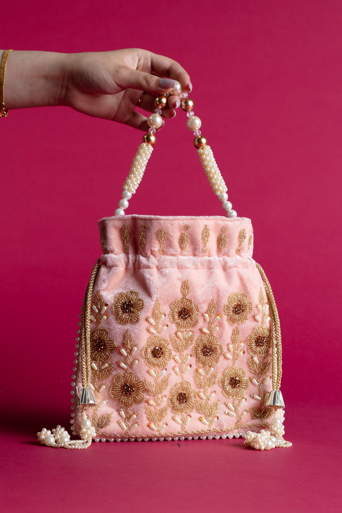 Shiffonz refined velvet pearl potli bag